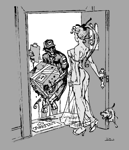 Now, before the Low Art Police hop on their high horses, we're aware this is a shameless ripoff of Lee Elias' beloved 50's zombie-on-girl classic for Chamber of Chills 23.